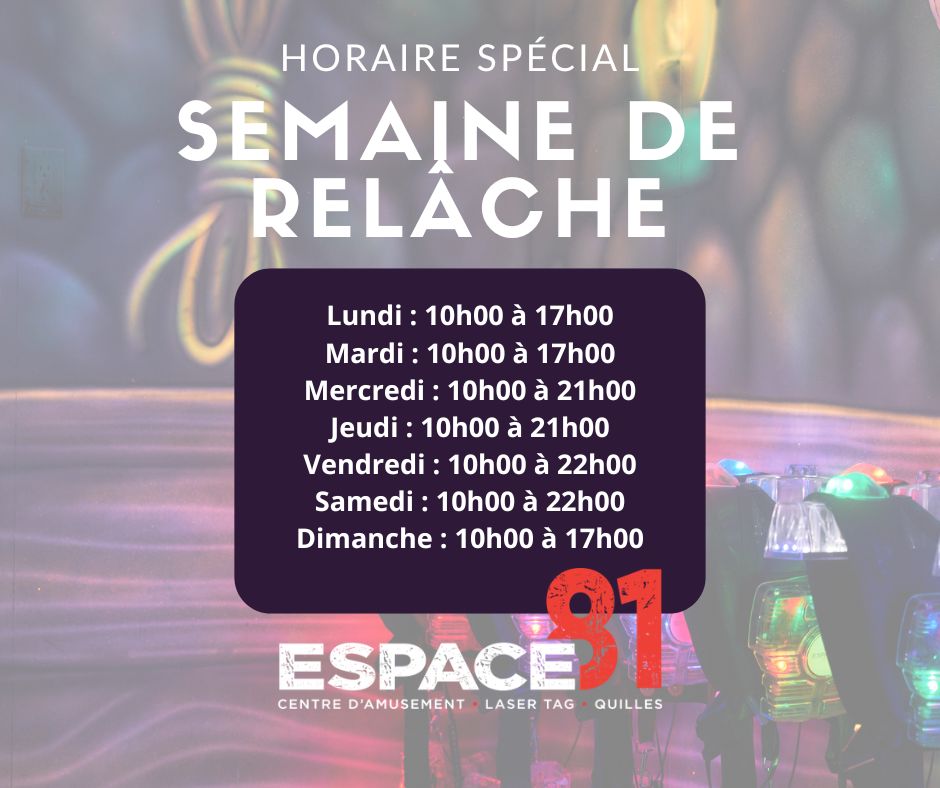 Bienvenue à Espace 81, le centre d’amusement incontournable à Drummondville! Que vous soyez un aventurier du laser tag, un pro des quilles ou un maître du baby-foot humain, on a tout ce qu’il faut pour vous faire vivre une sortie mémorable. Entre amis, en famille ou en groupe, préparez-vous à une dose d’adrénaline et de fun!